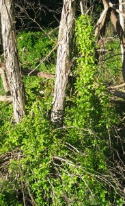 1. Restrict human access? Western Cape form supposedly not meant to grow in saline conditions, but found thriving on sand dunes adjacent to SA beaches (Hay 2007). Perennial climber that dominates ground flora, and can form “dense curtains smothering shrubs and the lower canopy of trees” (Muyt 2001). Whilst the plant does occur in riparian areas, it is most vigorous on lighter well-drained soils. Its presence proves a nuisance value to humans, impeding individual access to waterways and walking tracks.