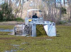 Environmentally Enhancing Australia's Waterways. Aquatic Weed Harvester Australia has been clearing water catchment areas of submerged and floating waterweeds since 1994. Our mechanical harvesters are designed and manufactured in Brisbane. The open conveyor system allows turtles and other wildlife to be quickly returned to the water simply by reversing the conveyor. Our GPS System allows overlap width cutting without any visual reference. For cost effective and efficient service we supply our own transport and the harvesters are moved directly to and from the water by a specially designed launch trailer which is towed by our compactor/transporter unit. We also design and sell specialised aquatic weed harvesting equipment. | Website | Contact |