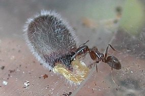 An argentine ant hauling a weed seed (Source: Alexei Rowles)
