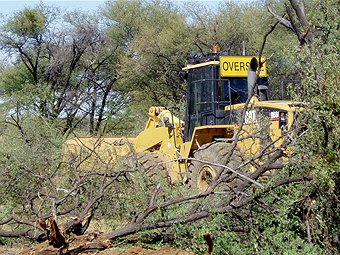 File photo: Pushing prickly acacia with a large machine is an option once it becomes like a forest. (Arlie Douglas)