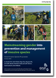 [Global Invasive Species Program 7 October 2011] -- Invasive species threaten ecosystems, habitats and other species, causing extensive environmental and economic harm. Gender affects people’s experiences, concerns and capabilities in natural resource management, and gender relations influence how environments are managed and used. A gender perspective on invasive species can therefore improve understanding of their impacts, increase effectiveness of prevention and control, and contribute to social equity. This study (right), undertaken by CABI Africa (Fish et al. 2010), brings together information on gender and invasive species, to inform those involved with research, policy and practice of invasive species prevention and management.