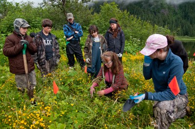 [Southeast Alalska Conservation Council 26 June 2012] -- WRANGELL, AK – Members of Wrangell’s Scout Troop 40 joined forces with the Southeast Alaska Conservation Council (SEACC), the Sitka Conservation Society (SCS) the United States Forest Service and local Wrangell volunteers to conduct a number of Wilderness stewardship activities on the Stikine River. The outing, funded in part by a grant through the National Forest Foundation, focused on managing invasive weeds near Twin Lakes and was part of a nationwide effort by the Forest Service to steward Wilderness areas. “The ultimate goal of this trip was to ensure that future generations inherit landscapes and watersheds like the Stikine that continue to provide opportunities to hunt, fish, and reflect in wild places that have been available to generations before them,” said Daven Hafey of SEACC. "The Stikine is the lifeblood of Wrangell, and we want to help make sure it remains healthy." The group focused on managing the aggressive reed canary grass along the Twin Lakes shoreline by covering it with sheets of black plastic. Hand pulling and shovels were also used to remove the non-native buttercup and dandelion at the lakes’ landing. Reed canary grass is a tall grass that invades and dominates riparian areas, displacing native plants and reducing the richness and diversity of insects. Non-native buttercup and dandelion are not as aggressive, but can push out native plant species. In total, the group worked a collective 304 hours over the course of five days. [Photo caption: When the Scouts and volunteers were not pulling weeds, they had an opportunity to reaffirm their connection to the land and enjoy what it means to be in the Wilderness]
