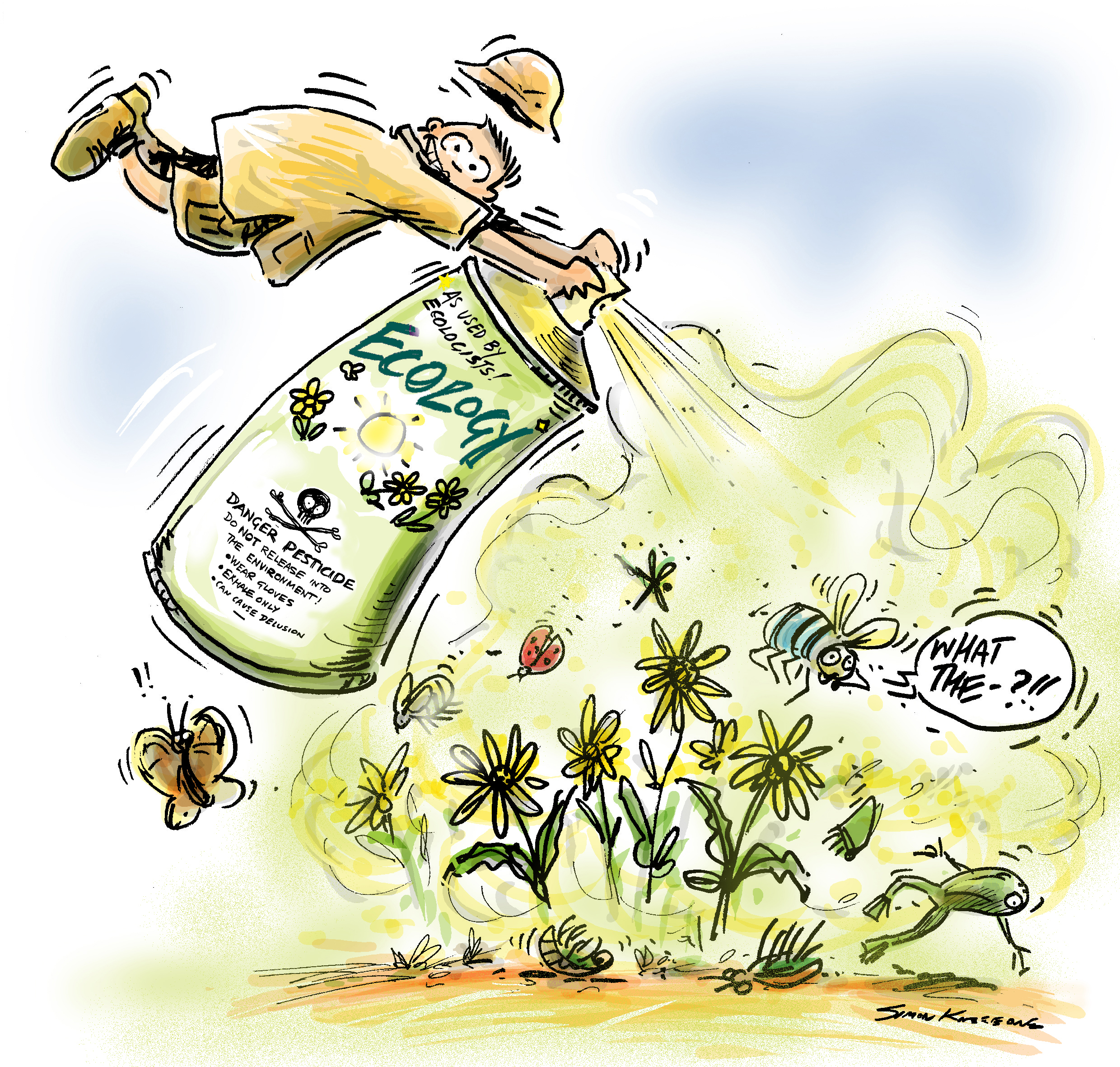 For example, the phenomenon discussed by Schaupp can be commonly found operating among ecologists who gain a perverse pleasure from pesticiding the life they are supposed to be looking after, hence my cartoon.
